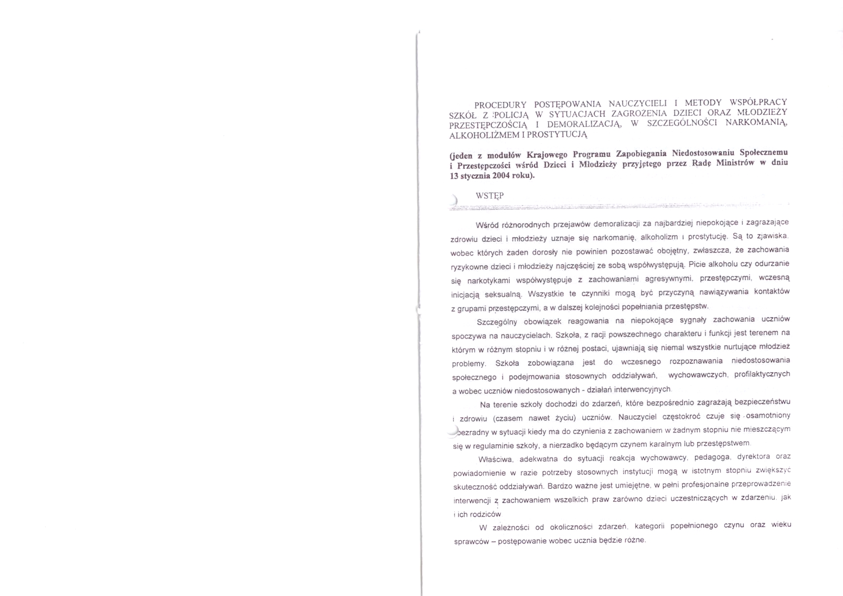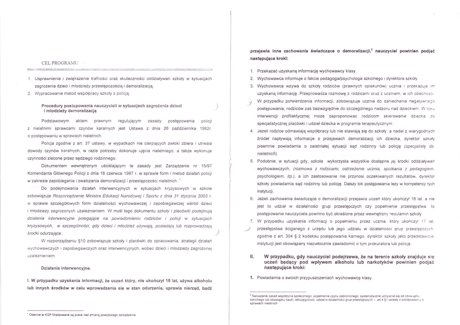 Procedury postępowania nauczycieli i metody współpracy szkół z policją w sytuacjach zagrożenia dzieci oraz młodzieży przestępczością i demoralizacją